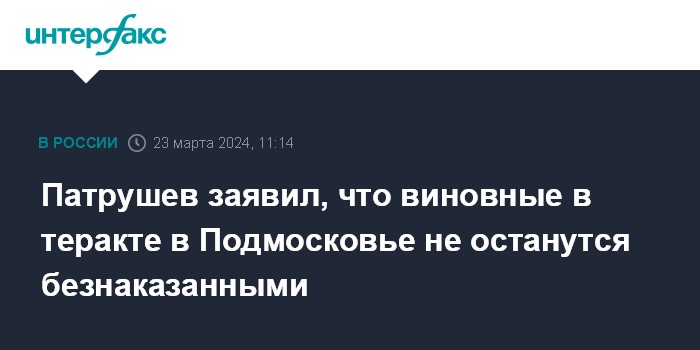 Москва. 23 марта. INTERFAX.RU - Секретарь Совбеза Николай Патрушев заявил, что все виновные в теракте в Красногорске будут наказаны.