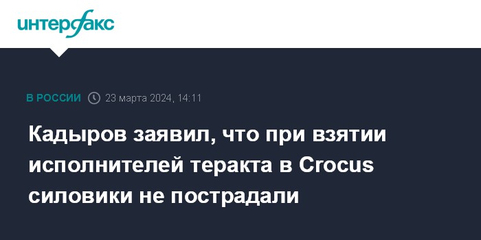 Кадыров заявил, что при взятии исполнителей теракта в Crocus силовики не пострадали