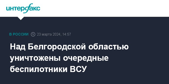 Москва. 23 марта. INTERFAX.RU - Российские военные сбили беспилотник самолетного типа над Белгородской областью, сообщили в Минобороны РФ.
