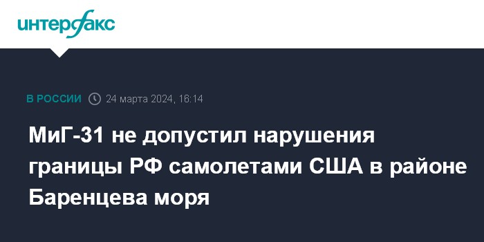 МиГ-31 не допустил нарушения границы РФ самолетами США в районе Баренцева моря