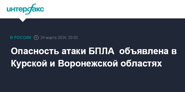 Опасность атаки БПЛА объявлена в Курской и Воронежской областях