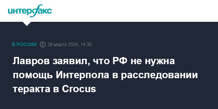 Лавров заявил, что РФ не нужна помощь Интерпола в расследовании теракта в Crocus