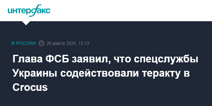 Москва. 26 марта. INTERFAX.RU - Теракт в подмосковном Crocus City Hall готовили радикалы-исламисты, способствовали всему и спецслужбы Украины, заявил глава ФСБ Александр Бортников.