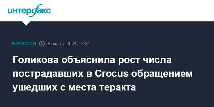 Голикова объяснила рост числа пострадавших в Crocus обращением ушедших с места теракта