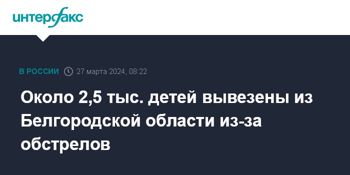 С 11 марта территория Белгородской области, включая областной центр, подвергается интенсивным атакам с украинской стороны. Есть погибшие и пострадавшие. Жителей обстреливаемых территорий эвакуируют в пункты временного размещения. Детей ради безопасности вывозят в другие регионы РФ. Всего предполагается разместить в регионах порядка 9,5 тыс. белгородских детей.