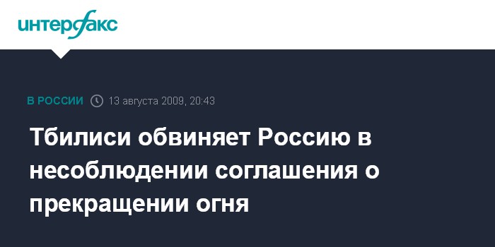 Тбилиси. 13 августа. INTERFAX.RU - МИД Грузии обвинил Россию в том, что она не выполняет обязательства, взятые в рамках соглашения о прекращении огня от 12 августа 2008 года.