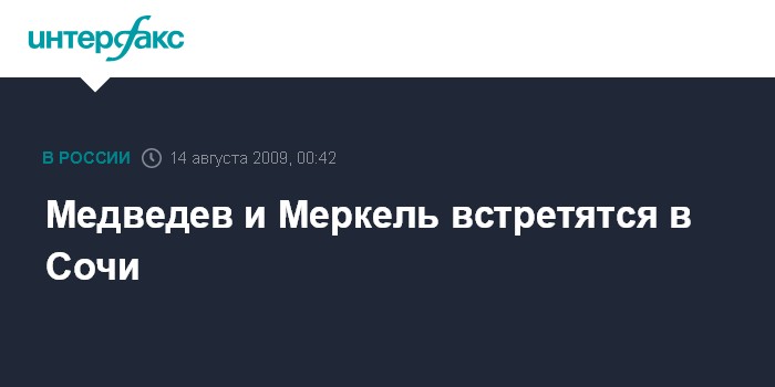 Москва. 14 августа. ИНТЕРФАКС - Федеральный канцлер Германии Ангела Меркель в пятницу посетит Россию с рабочим визитом; российско-германская встреча на высшем уровне состоится в Сочи.