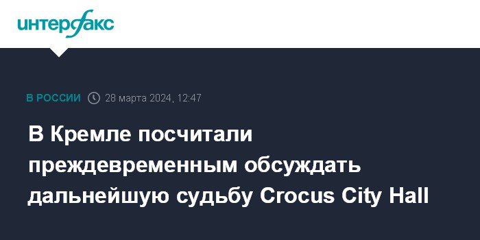 В Кремле посчитали преждевременным обсуждать дальнейшую судьбу Crocus City Hall