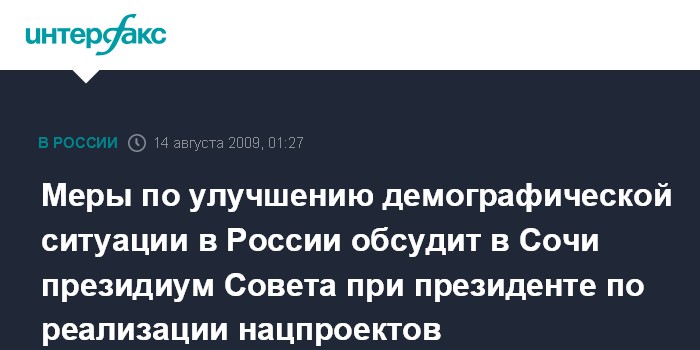 Меры по улучшению демографической ситуации в России обсудит в Сочи президиум Совета при президенте по реализации нацпроектов