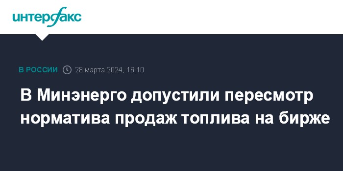 В Минэнерго допустили пересмотр норматива продаж топлива на бирже