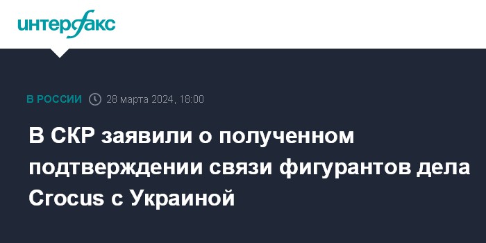 Москва. 28 марта. INTERFAX.RU - Информация в изъятых у подозреваемых в теракте в Crocuss City Hall технических устройствах подтверждает их связь с украинской стороной, заявили в Следственном комитете РФ (СКР).