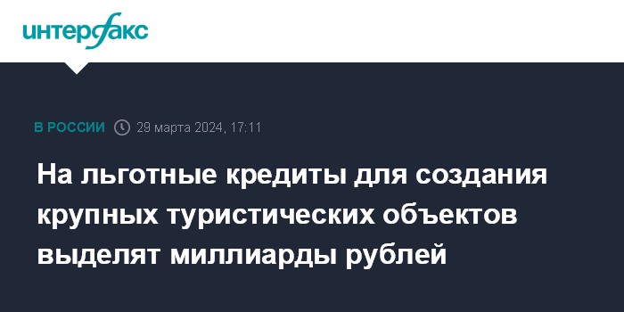 На льготные кредиты для создания крупных туристических объектов выделят миллиарды рублей