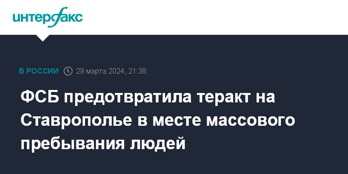 ФСБ предотвратила теракт на Ставрополье в месте массового пребывания людей