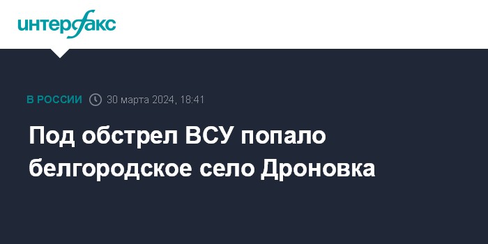 "Под обстрел ВСУ попало село Дроновка Грайворонского городского округа. Пострадавших нет", - написал он в субботу в своем телеграм-канале.