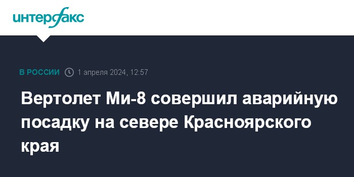 Вертолет Ми-8 совершил аварийную посадку на севере Красноярского края