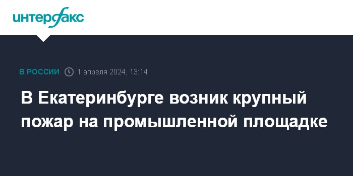 Москва. 1 апреля. INTERFAX.RU - Пресс-служба МЧС РФ сообщила в понедельник о пожаре на территории промышленной площадки в Екатеринбурге.