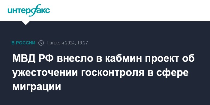 МВД РФ внесло в кабмин проект об ужесточении госконтроля в сфере миграции
