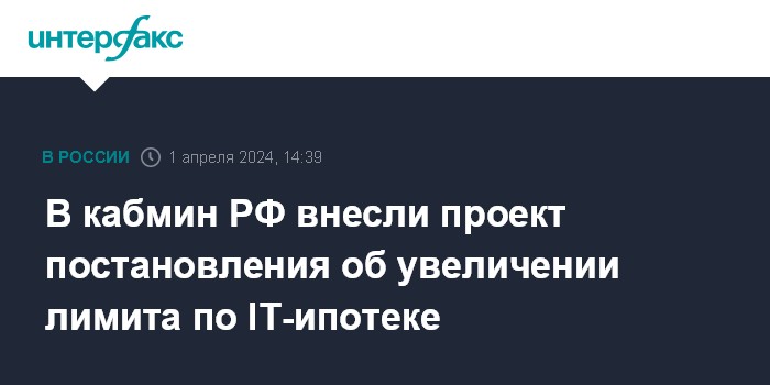 В кабмин РФ внесли проект постановления об увеличении лимита по IT-ипотеке