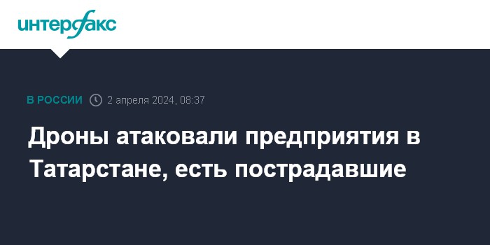 Москва. 2 апреля. INTERFAX.RU - Беспилотники утром во вторник атаковали несколько предприятий в Нижнекамске и Елабуге, технологический процесс на предприятиях не нарушен, но есть пострадавшие, сообщила пресс-служба главы Татарстана.