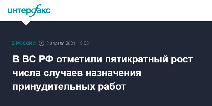 В ВС РФ отметили пятикратный рост числа случаев назначения принудительных работ
