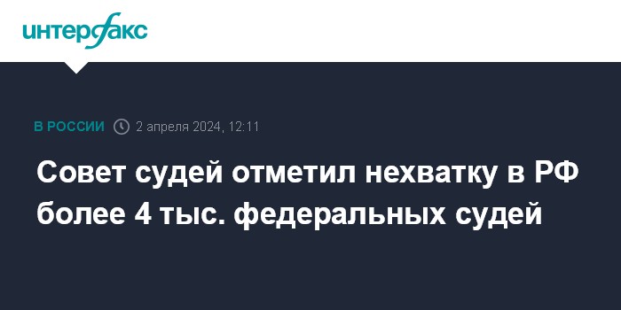 Совет судей отметил нехватку в РФ более 4 тыс. федеральных судей