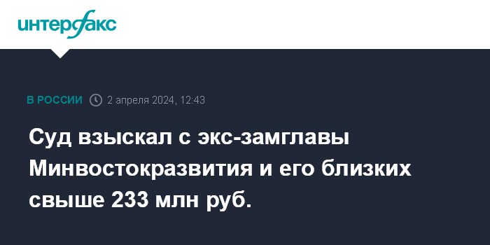 Суд взыскал с экс-замглавы Минвостокразвития и его близких свыше 233 млн руб.
