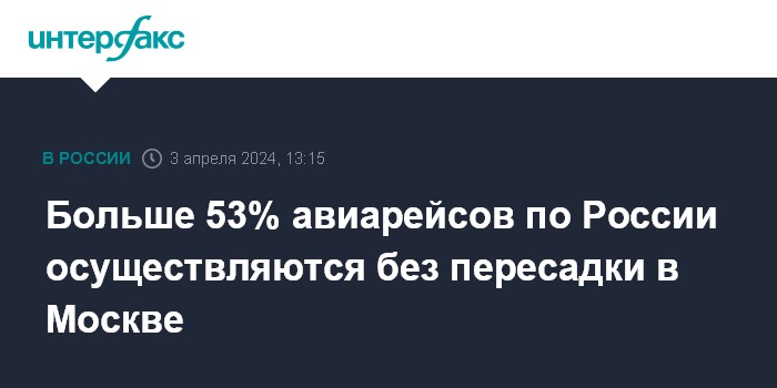 "Люди уже пользуются преимуществами более коротких и удобных маршрутов. Впервые около 53% внутренних авиарейсов стали проходить без пересадки в Москве", - сказал он.