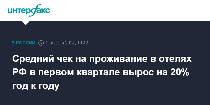 Средний чек на проживание в отелях РФ в первом квартале вырос на 20% год к году