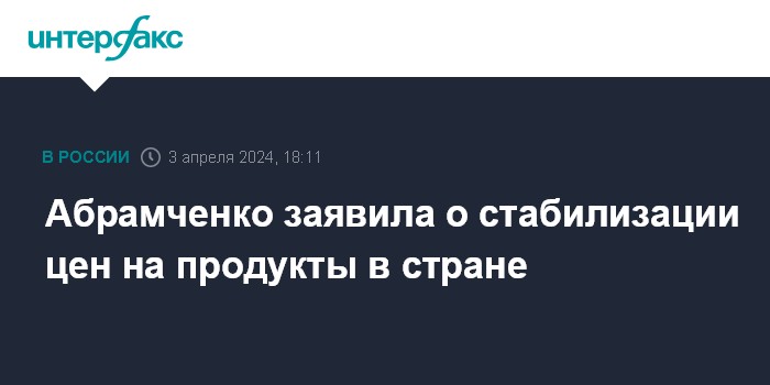 Москва. 3 апреля. INTERFAX.RU - Цены на продовольствие в России стабилизированы, все принятые для этого меры сработали, заявила журналистам вице-премьер Виктория Абрамченко.