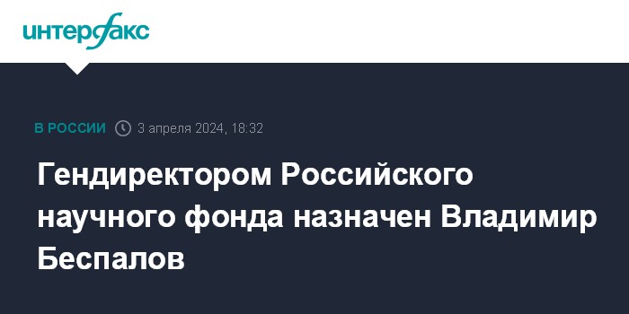 "Назначить Беспалова Владимира Александровича генеральным директором Российского научного фонда сроком на пять лет", - говорится в документе, опубликованном на портале правовой информации в среду.