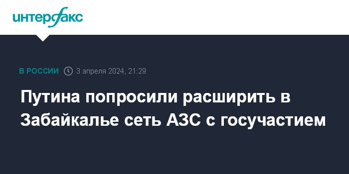 Путина попросили расширить в Забайкалье сеть АЗС с госучастием