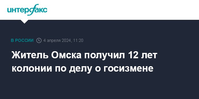 Москва. 4 апреля. INTERFAX.RU - Омский областной суд приговорил 46-летнего местного жителя к 12 годам колонии строгого режима, признав его виновным в госизмене (ст. 275 УК), сообщила прокуратура региона.