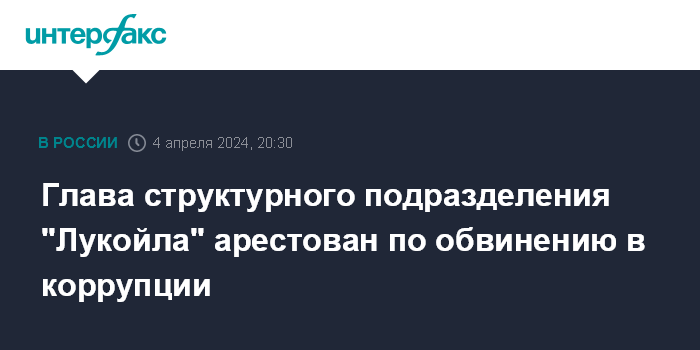 Глава структурного подразделения "Лукойла" арестован по обвинению в коррупции