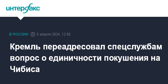 Кремль переадресовал спецслужбам вопрос о единичности покушения на Чибиса