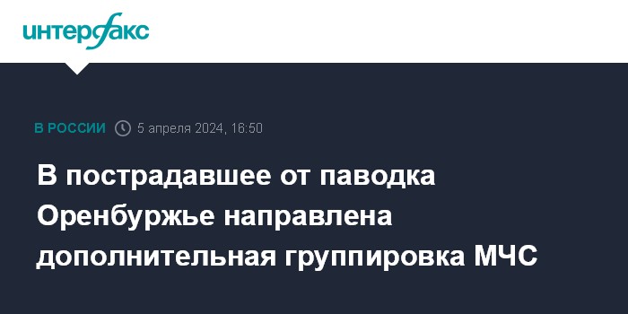 В пострадавшее от паводка Оренбуржье направлена дополнительная группировка МЧС