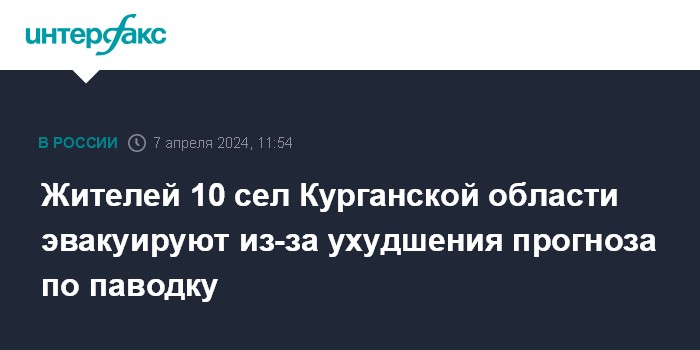 Москва. 7 апреля. INTERFAX.RU - Превентивная эвакуация объявлена для жителей нескольких населенных пунктов в двух округах Курганской области в связи с ухудшающимися прогнозами по паводку, сообщается в телеграм-канале правительства региона в воскресенье.