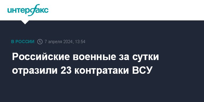Москва. 7 апреля. INTERFAX.RU - Минобороны РФ сообщило, что российские военные в зоне СВО за сутки отразили 23 контратаки ВСУ.