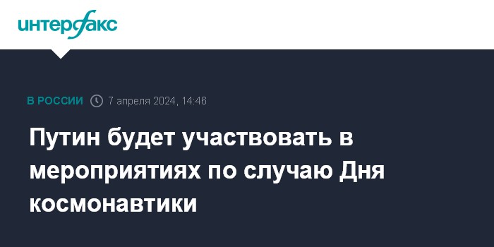 Путин будет участвовать в мероприятиях по случаю Дня космонавтики