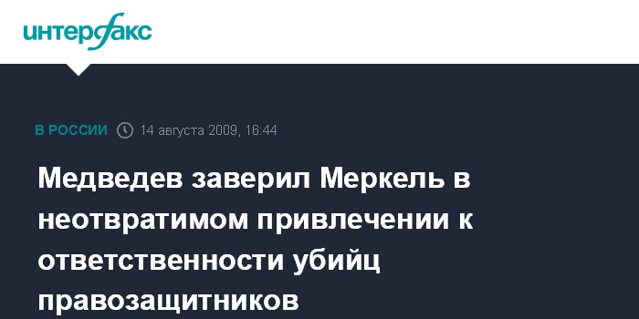 Медведев заверил Меркель в неотвратимом привлечении к ответственности убийц правозащитников