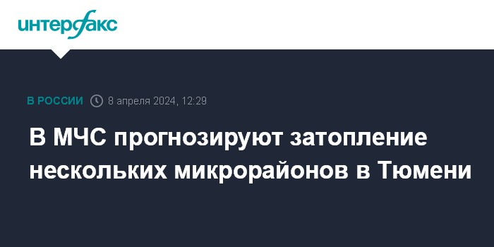 Москва. 8 апреля. INTERFAX.RU - Весеннее половодье затронет Тюменскую область, в зону подтопления попадут микрорайоны города, заяви в Госдуме замглавы МЧС России Виктор Яцуценко и пообещал нарастить там группировку спасателей.