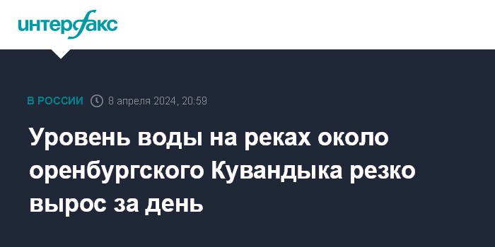 Москва. 8 апреля. INTERFAX.RU - В районе города Кувандык Оренбургской области за день вырос уровень воды в нескольких реках, сообщает телеграм-канал Кувандыкского городского округа.
