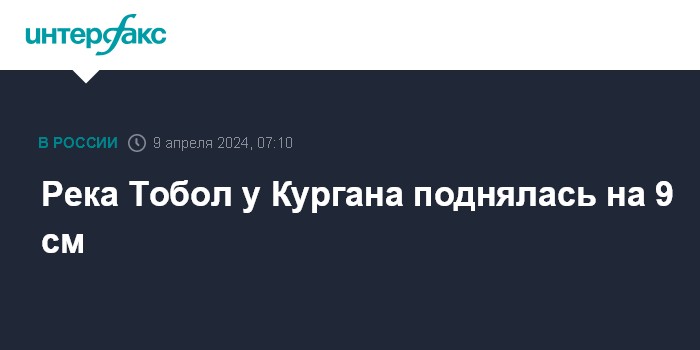 Москва. 9 апреля. INTERFAX.RU - Уровень воды в реке Тобол у Кургана вырос на 9 см, сообщает мэрия во вторник.