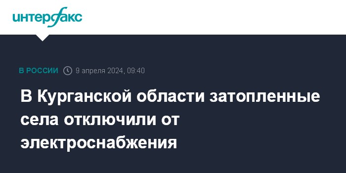 Москва. 9 апреля. INTERFAX.RU - В Курганской области из-за повышения уровня воды в реках до опасных значений отключили от электроснабжения подтопленные села в Звериноголовском и Притобольном округах, жителей этих сел эвакуируют, сообщила энергетическая компания АО "СУЭНКО".