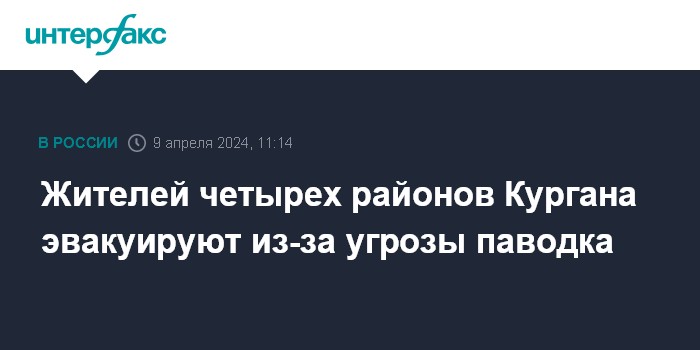 Москва. 9 апреля. INTERFAX.RU - Превентивная эвакуация жителей нескольких районов Кургана проводится из зон возможного затопления и подтопления, сообщает пресс-служба горадминистрации.