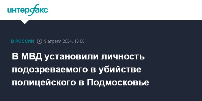 Москва. 9 апреля. INTERFAX.RU - Установлена личность мужчины, подозреваемого в убийстве одного полицейского и ранении другого в Подмосковье, заявила официальный представитель МВД РФ Ирина Волк в своем телеграм-канале во вторник.