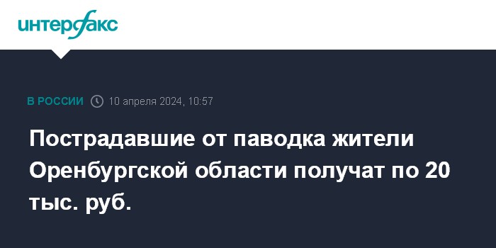 "Оренбуржцам, пострадавшим от паводка, положена выплата. По решению губернатора Дениса Паслера каждый пострадавший получит 20 тыс. рублей. Эти выплаты уже производятся", - говорится в сообщении.