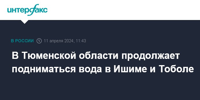 Москва. 11 апреля. INTERFAX.RU - В Тюменской области продолжает расти уровень воды в реках Ишим и Тобол, сообщает информационный центр регионального правительства.