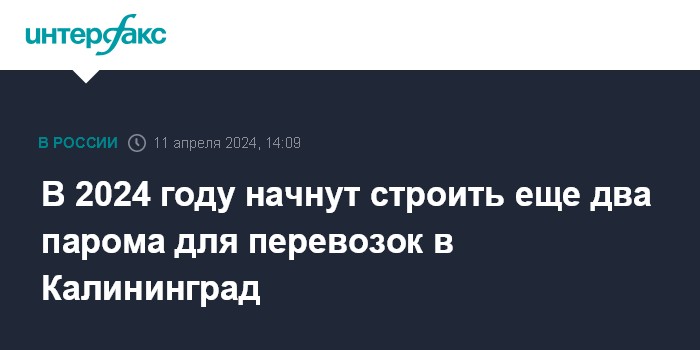 Москва. 11 апреля. INTERFAX.RU - В 2024 году начнут строить два новых железнодорожных парома для грузовой линии между Калининградской и Ленинградской областями, сообщила пресс-служба ФГУП "Росморпорт".