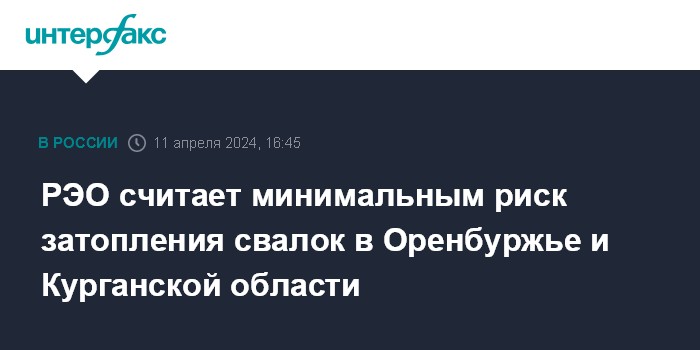 Москва. 11 апреля. INTERFAX.RU - Вероятность подтопления свалок твердых коммунальных отходов в Оренбургской и Курганской областях является минимальной, заявил через пресс-службу гендиректор Российского экологического оператора (РЭО) Денис Буцаев.
