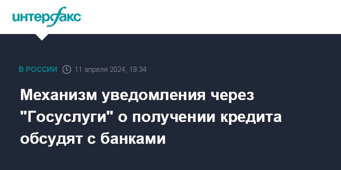 Механизм уведомления через "Госуслуги" о получении кредита обсудят с банками
